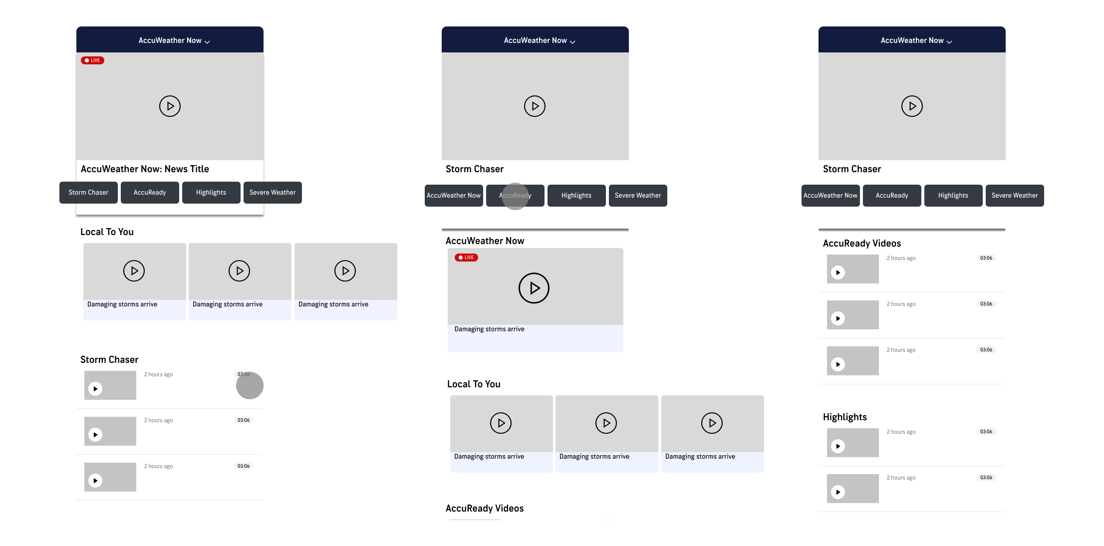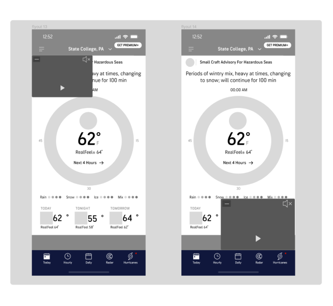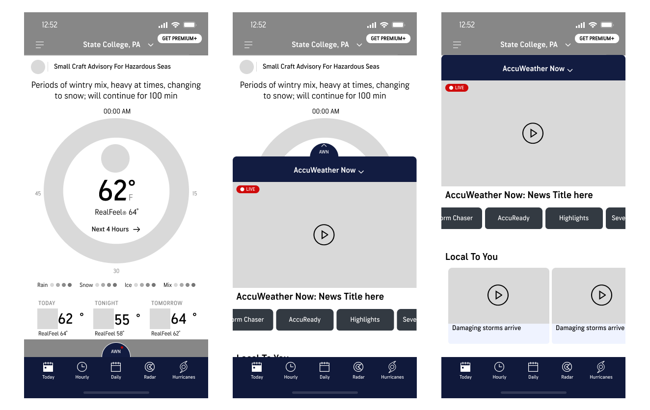 I learned from the recorded user interviews that many of the pain points of the current AccuWeather Now video feature was its interaction rate. Many users did not want to interact with the video player even though it was on the landing page. Since the user arrived at the AccuWeather website for another task they found it more troublesome than helpful.
