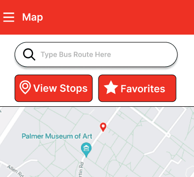 The search bar was implemented for riders to quickly find the bus route or choose from the recently searched list. It was ultimately decided to keep the search bar at the top of the app instead of the bottom third because 48% of the student riders were more familiar with similar features in similar applications.